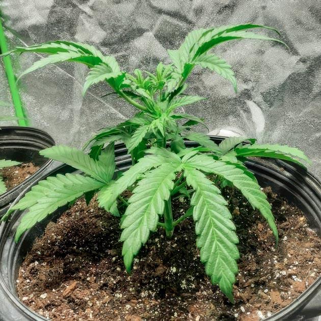 Неделя вроде бы началась прекрасно, росточки вытягивались, отращивали листочки и крепли на свету, но в один момент что-то пошло не по плану. Меня не было дома, а температура в помещении поднялась почти поднялась почти до 39 °C и держалась так около восьми часов. Обычно такая жара может сильно навредить молодым ранимым саженцам и даже убить их, но, к счастью, мои малыши перенесли испытание стойко. Никаких заметных повреждений не проявилось, зелень осталась яркой, стебель крепким, а рост продолжился без задержек. И это определенно огромный плюс данной генетики и ранней поддержки витаминами. Спасибо Ктулху, как говорится.