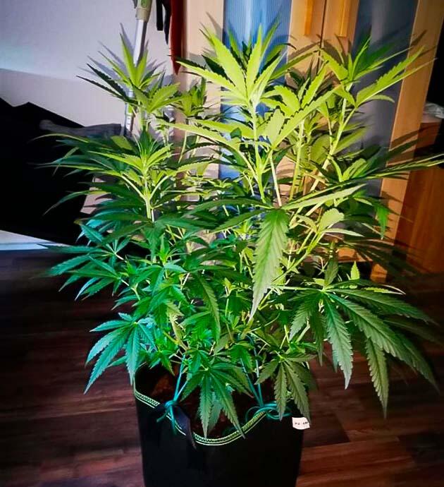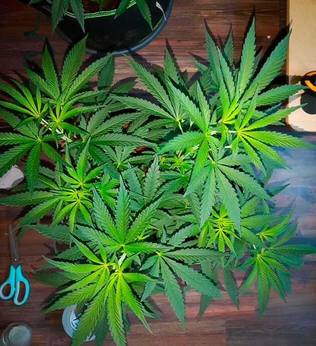 Наконец-то пошел заметный рост бутонов. Кусты активно набирают массу, при этом высота уже около 85 см. Из-за жары и тесноты снова проявился легкий стресс, поэтому снова вернул самодельную ScrOG-сетку из резинок, чтобы распределить кроны и улучшить вентиляцию. Как же уже хочется быстрее дождаться харва. Понял, что терпением я не блещу.