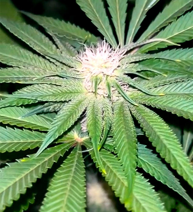 На 44-й день появились первые пестики и зачатки бутонов, что говорит об официальном старте фазы цветения. В течение недели постепенно увеличивал мощность света с 40 % до 100 %, чтобы растения получили максимум энергии для формирования соцветий. Также на 46-й день провел финальную дефолиацию. Убрал лишнюю листву для лучшего проникновения света вглубь кроны, а после хорошо подкормил кустики удобрениями CANNA Terra Flores в дозировке 3,5 мл/л для активного цветения.