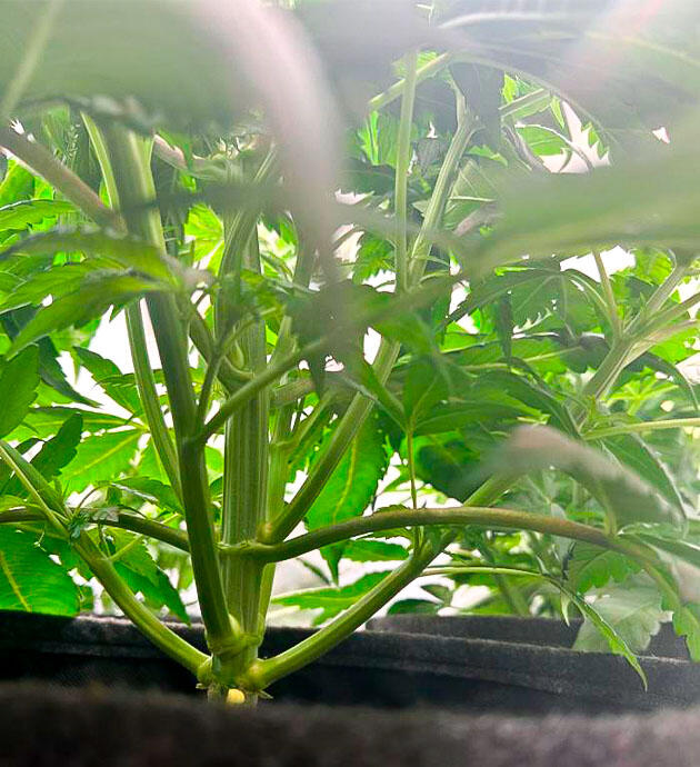Кусты отлично прижились после пересадки и быстро пошли в рост. На 17-й день я выполнил первый полив легким раствором CANNA Terra Vega (2,5 мл/л), а на 19-й день провел топпинг. Растения отреагировали спокойно, и уже через пару дней из верхних узлов пошли новые ответвления.