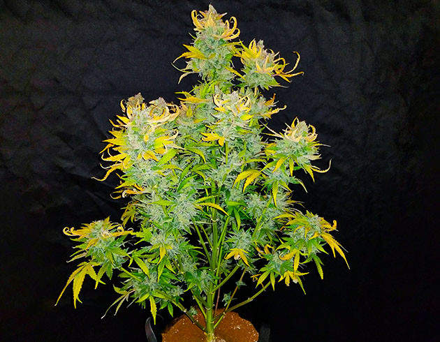 Оба куста каннабиса сильно пахнут лимоном и невероятно липкие. Это один из самых смолистых сортов, что я когда-либо встречал. Бутоны имеют фиолетовые вкрапления и лимонно-желтые сахарные листочки.