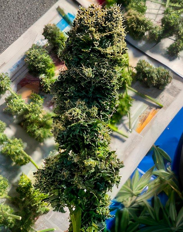 Набор зеленой массы у куста продолжался примерно до 11-й недели, а дальше активно пошли набухать и покрываться смолой шишки. К 12 неделям в этом шикарном «Досвидосе» сложно было узнать то скромное небольшое растеньице, которым куст был до предцвета. Пить «Досвидос» стал уже по 4,7 литра. На удобрения от AN отреагировал замечательно.