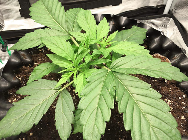 Полил 250 мл компота. Почва несильно сохнет, условия в гроубоксе комфортные, так что кустик не спешит пить и в целом выглядит отлично. Через сутки после полива сделал LST и подогнул некоторые листья, чтобы боковые веточки получали больше света, а я получил больше шишек.