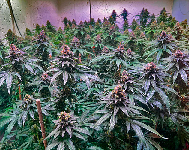 Растишки с удовольствием приняли такую подкормку и отозвались активной выработкой смолы. Шишки уже очень аппетитные, я не удержался и срезал одну на пробу. Скажу так, уже сейчас продукт на твердую 3+, а для кого-то, может, и на 4+. Ждать осталось недолго, трихомы уже начали мутнеть. В конце 12-й недели начал ставить подпорки для некоторых кустов, так как ветви стали сильно гнуться под весом шишек.