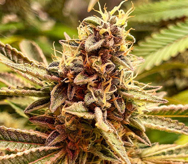 Учитывая обожженные удобрениями части куста, я начал постепенно удалять все больше и больше листвы. Таким образом, растение направит свой финальный рывок на соцветия, да и работать с кустом на харвесте будет проще. Хочу отметить, что в палатке не слишком сильный запах, несмотря на монструозный вид растения и огромное количество бутонов. Куст очень интересного цвета, фиолетово-красно-розового. Такого изменения цвета можно добиться не только ожогом удобрениями, но и значительными перепадами температур. Напомню, разница между днем и ночью составляет 12 градусов. С 20-й недели куст начал также получать Stimulator Super Boost PK в количестве 1 мл/л.