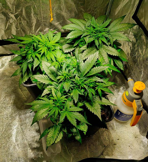 Что касается условий грова. Палатка 100 х 100 х 180 см стоит в нежилом помещении. Для освещения использую китайский борд на 280 ватт, бренд ноунейм. В планах приобрести какую-нибудь крутую лампу, но пока обхожусь этой, пока не разберусь в теме более глубоко. Горшки по 11 литров, универсальный грунт + немного перлита, на дне 2 сантиметра пенопласта для дренажа. Удобрения – GHE Dual Part + стимулятор для корней Ata Rootbastic.