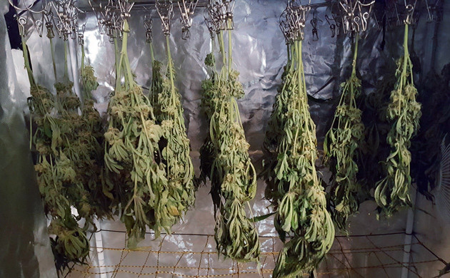 Последние две недели цветения. Не могу сказать, что я сильно впечатлен размерами шишек, но всё же мне удалось добиться приемлемых результатов. На 18-й неделе количество янтарных трихом было меньше 10%. На 19-й неделе их не стало намного больше, но я все же решил не ждать и после трехдневной промывки срезал урожай. В общем, у меня получилось 26 ветвей, которые я подвесил в тенте сушиться.