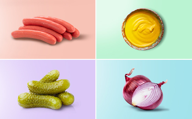 - 4 говяжьи сосиски,