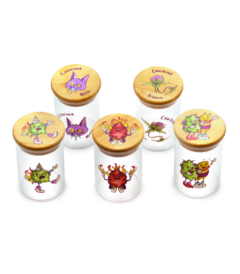 Работа гровера не завершается на этапе сбора урожая. После того, как шишки срезаны, отманикюрены и высушены, их нужно хранить в подходящей таре. Забудьте о дедовском методе «завернуть в газету»! Баночка герметичная с принтом 7CH большая изготовлена из стекла, а крышка – из бамбука. Ёмкость герметична, не пропускает запах, а внутрь не попадает воздух, что очень важно для долгосрочного хранения растительного материала конопли. На баночку нанесен фирменный принт в стиле «Семяныча». Её размер – 6,5х10,8 см. В такой ёмкости урожай будет не просто лежать в целости и сохранности, но еще и выглядеть очень стильно.