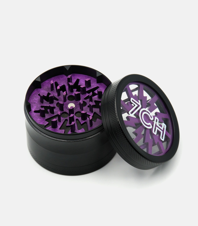 Измельчение сушеных материалов еще никогда не было таким простым. Гриндер из цинкового сплава – это надежный девайс, который прослужит гроверу долго. Он состоит из трех камер. Отличительная особенность изделия заключается в прозрачной верхней крышке. За счет этого можно наблюдать за процессом измельчения. Ножи ромбовидные и очень острые, что позволяет накрошить сушеные травы за несколько движений. Крышка крепится к отсеку с лезвиями при помощи магнита. Таким образом, даже если гриндер перевернуть, он не раскроется. Следующие две камеры предназначены для хранения измельченного продукта. Одна большая и достаточно вместительная, она имеет диаметр 63 мм. Нижняя камера используется для сбора пыльцы. Для этого отсек оснащен металлической сеточкой, через которую просеивается самая мелкая фракция. У гриндера оригинальный дизайн во многом благодаря прозрачной верхней крышке. Доступен для заказа в разных цветах.