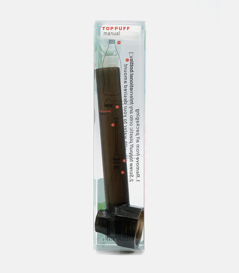 Использовать трубку для бутылки Top Puff предельно просто. Достаточно набрать в бутылку воды, накрутить верхнюю насадку-мундштук и вставить в нее стеклянную трубку. Воды должно быть столько, чтобы нижняя часть стеклянной трубки была в нее погружена. Девайс удобен в использовании и за счет водного охлаждения позволяет сполна насладиться вкусом и ароматом растительного продукта.