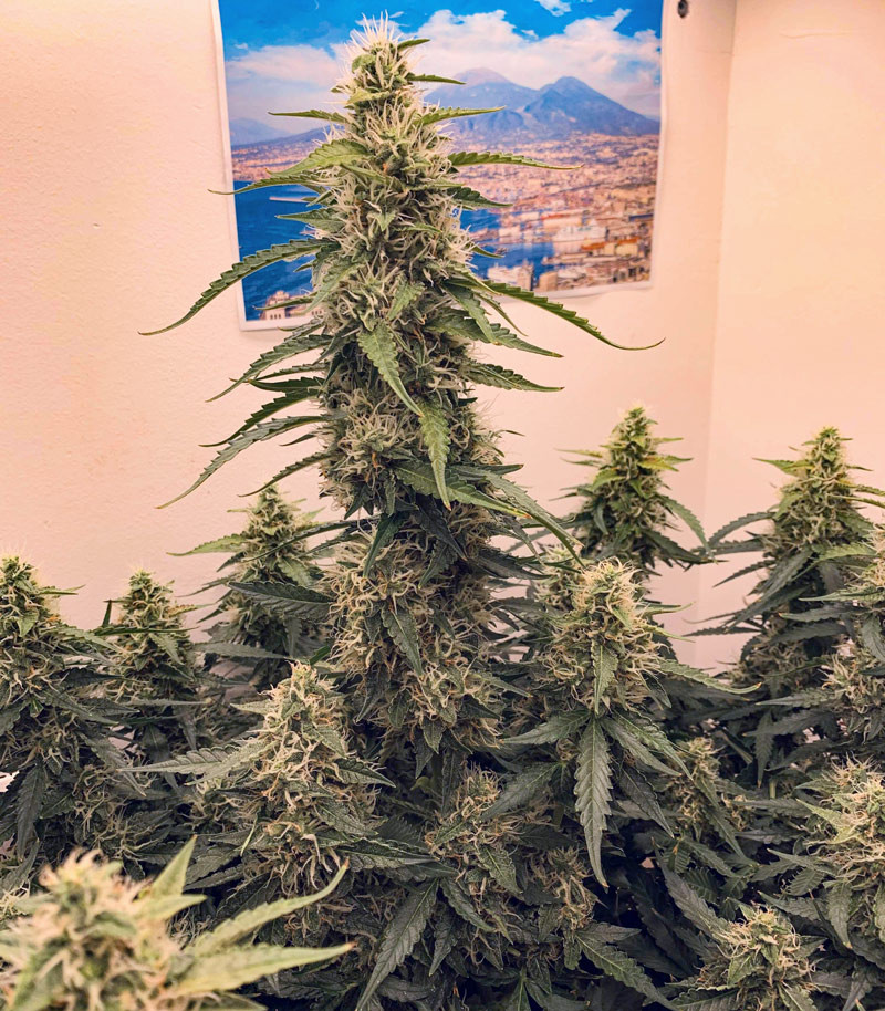 благодаря генам Сативы, раскидистые массивные кусты быстро набирают массу;