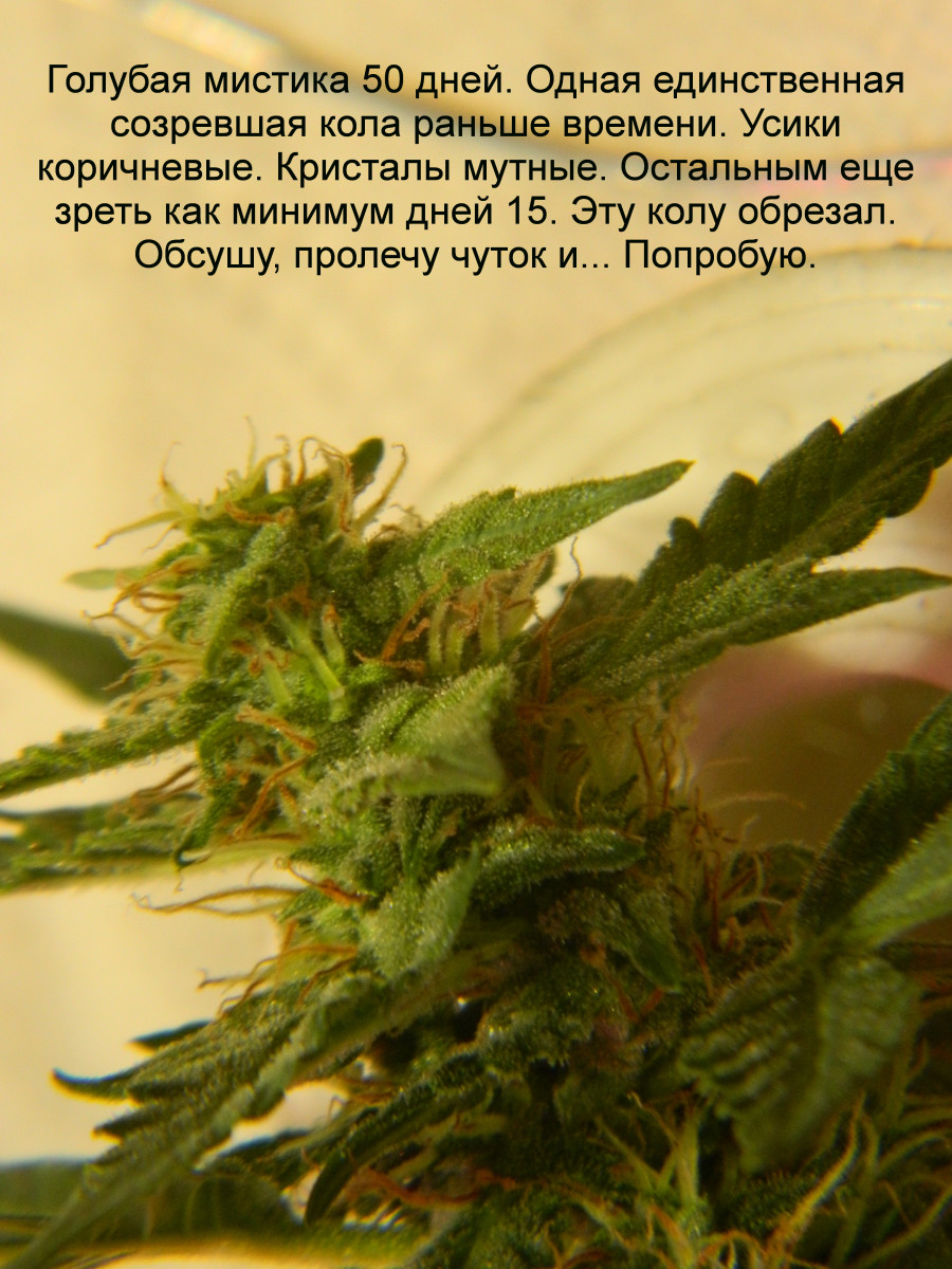 - Общие впечатленияНаводя порядок в шкафу наткнулся на семена, подписаные блуберри регулярный авто-1шт, бийонг зе брайан ругулярный фото-1шт, блу мистик авто-1шт. О двух первых мои коменты есть. Голубая мистика. Созревала по очереди. Вначале одна кола, затем другая. Первая созрела за 48 дней, последняя 79 дней. Эффект хороший, стабильный.Вначале мощный стоун, затем ленивый хай. Под конец баиньки. Хотел Семянычу на звезду меньше поставить, за телесные вибрации. Расслабился и ждал пока хоть что то завибрирует, не дождался. Да Бог с ними с этими вибрациями. Эффект шикарный, мягкий, нежный, спокойный. Фото не загрузились, пишет "кириллицу на фото использовать нельзя". Жаль что Тор браузер.