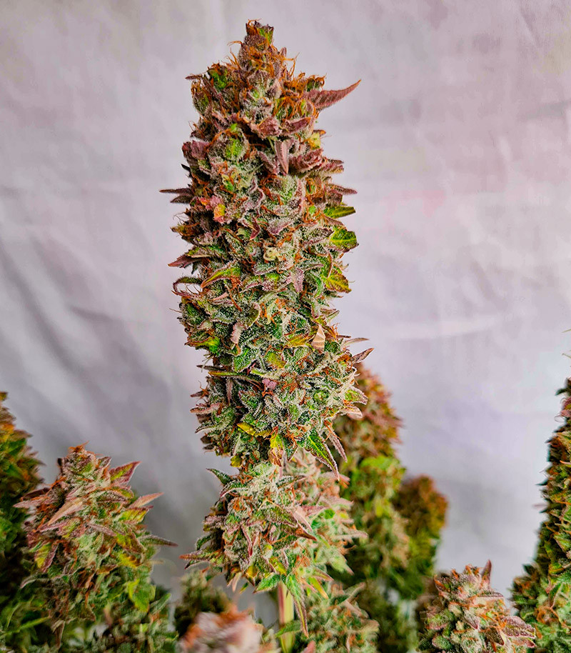Структура растений Keep Frosted Guava Auto напоминает традиционную рождественскую ель. Вытянутую центральную колу обрамляют более короткие боковые ветви с умеренным количеством яркой листвы. Рост каннабиса обычно не превышает 100 см, при этом урожай в помещении достигает 400 - 500 г с кв. м. Благодаря генам Frosted Skywalker поверхность кустов сверкает не менее ярко, чем дамы на каннской красной дорожке, так что приготовьте солнцезащитные очки, чтобы не ослепнуть от подобного зрелища.