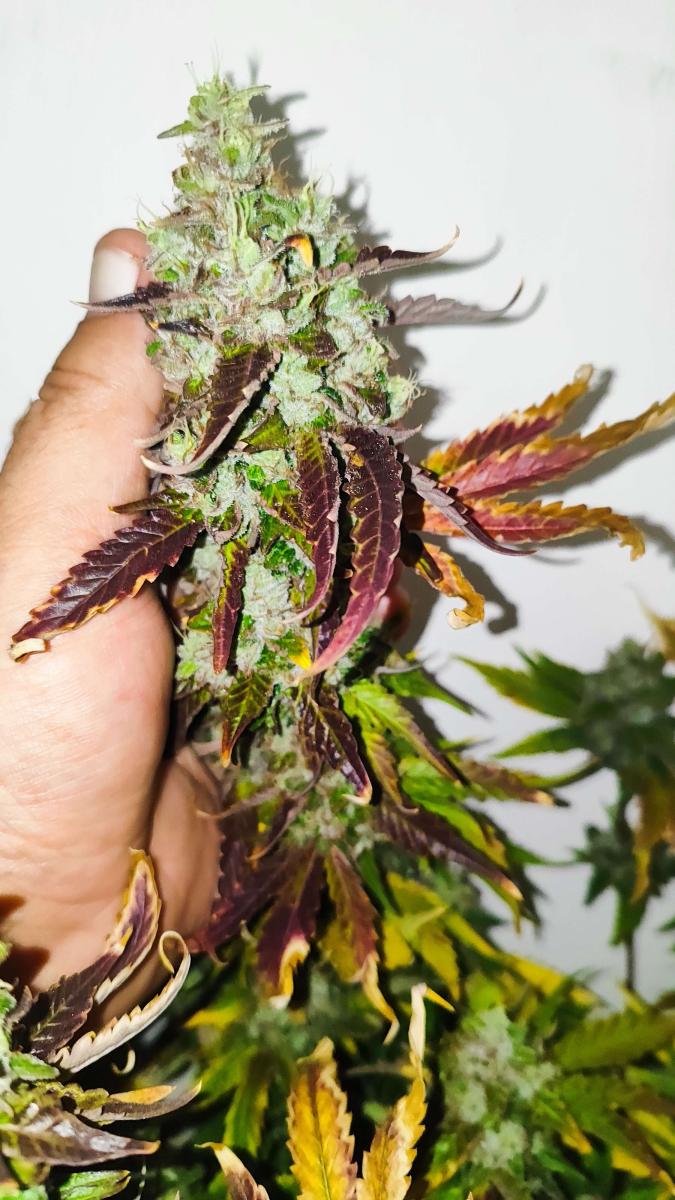 Реально отличный гибрид. Запах - шедевр. Сначала был как салон новенького автомобиля - кожа, пластик, елка-вонючка. Сейчас что-то гашишное оливковое масло отдаленно ягодами. Сейчас 8 недель но он вроде посмел.