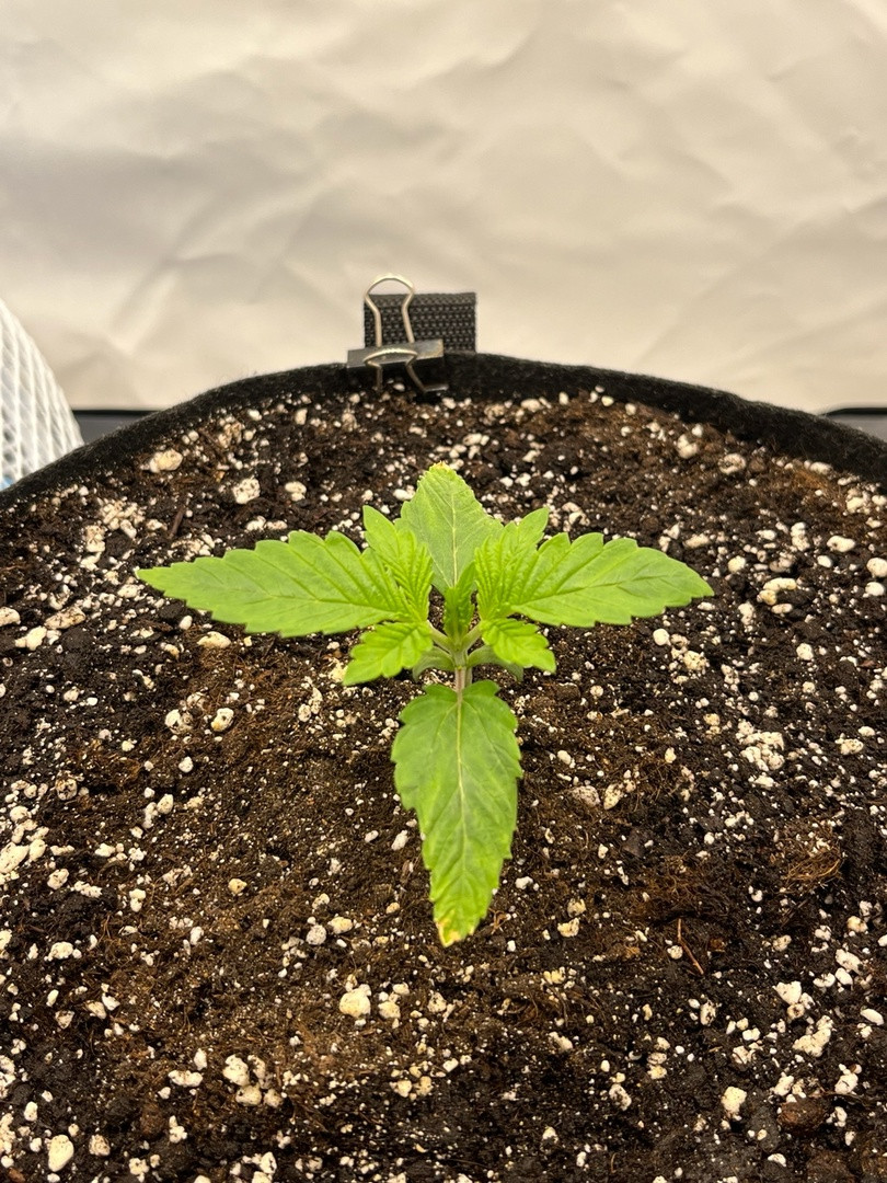 Проращивание, росток – все стандартно и без проблем. Развитие было довольно активным, росток выглядел здоровым и крепким. К 4 неделям это было еще относительное небольшое, но многообещающее великолепие. 5 недель – еще лучше. Тогда же решил переводить уже на цветение. Хватило и недели, чтобы начали завязываться бутоны.