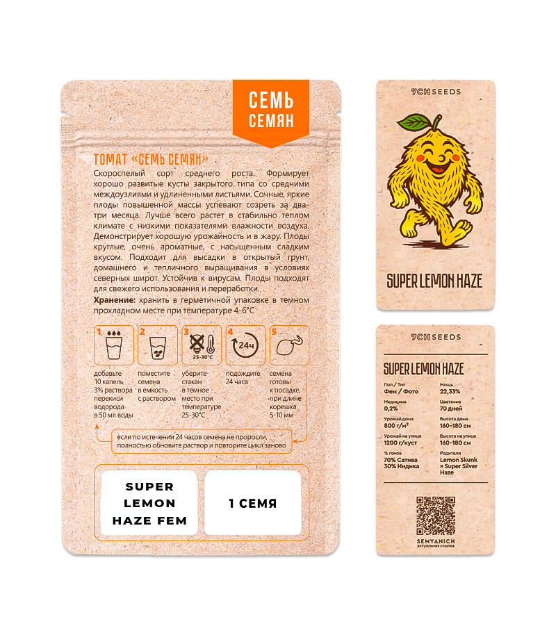 Сорт конопли Super Lemon Haze fem от Семяныча несет в себе генетику двух прославленных семейств. Он отличается неприхотливостью в уходе, насыщенными цитрусовыми вкусоароматическими качествами и обильными показателями урожайности. Его шишки приносят яркий воодушевляющий хай, дарящий эйфорию.
