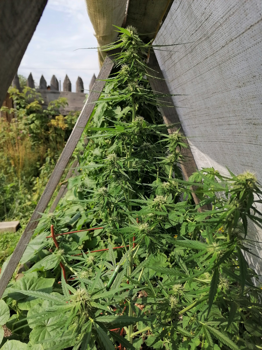 - Общие впечатленияРастиха выжила при 2-х недельном отсутствии солнца, холоде (+7°С), и вот наконец зацвела, на фото 56 дней (неделя цвета), рост 60 см. Впереди ещё 40-50 дней цвета, надеюсь вымахает ещё) Пожелайте удачи, братья раста и гроверы)