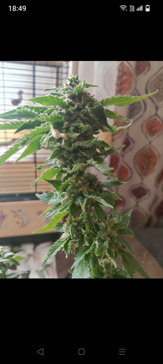 - Общие впечатленияЦикл ещё не закончен, на фото 80 дней. Бокс 40/40/120. Кокос. особо не долго думал сажать, или не сажать до нее поднимал гушера, бонуску вышел прекрасно, закинул и эту. Результат я думаю будет нормальным. На фото ей 80 дней, из достоинств приятный запах, даже не скажешь, что прямо травы, на фото видно, рядом бонуска вдовы, в литровом горшке, принес с балкона, так вот она после лст зацвела шмалью пахнет намного сильней, чем эта, которую ласково зову фрутиха. Шишки получаются растут не сплошной, а как у американцев, но как по мне, я не знаю, плюс это или минус. Хорошо переносит жару, сейчас на улице плюс 30,, в боксе 28 и переносит нормально, хотя в сорте указано " индика преобладает". Удобрения ест умеренно, после начала цвета начала есть прямо активно, я прямо засомневался, хватит ли мне банок А и Б для цвета, а у адвансов они не дешёвые. Но при добавлении ПК, аппетит остановился, ест где то 750 ппм, не капризная. Думаю ещё недели три и можно будет окончательно смотреть результат. Единственное с чем столкнулся но сам виноват, долго зацветала, но тут моя ошибка, рано перешёл на удобры на цвет. Кстати как всегда орех от семяныча взошел без проблем. В общем доволен. Как отцветет, дополню отзыв. Надеюсь кому то помог с выбором. Всем Джа.