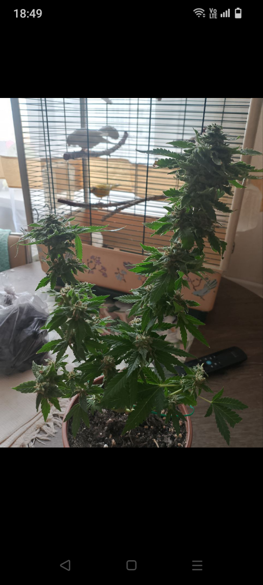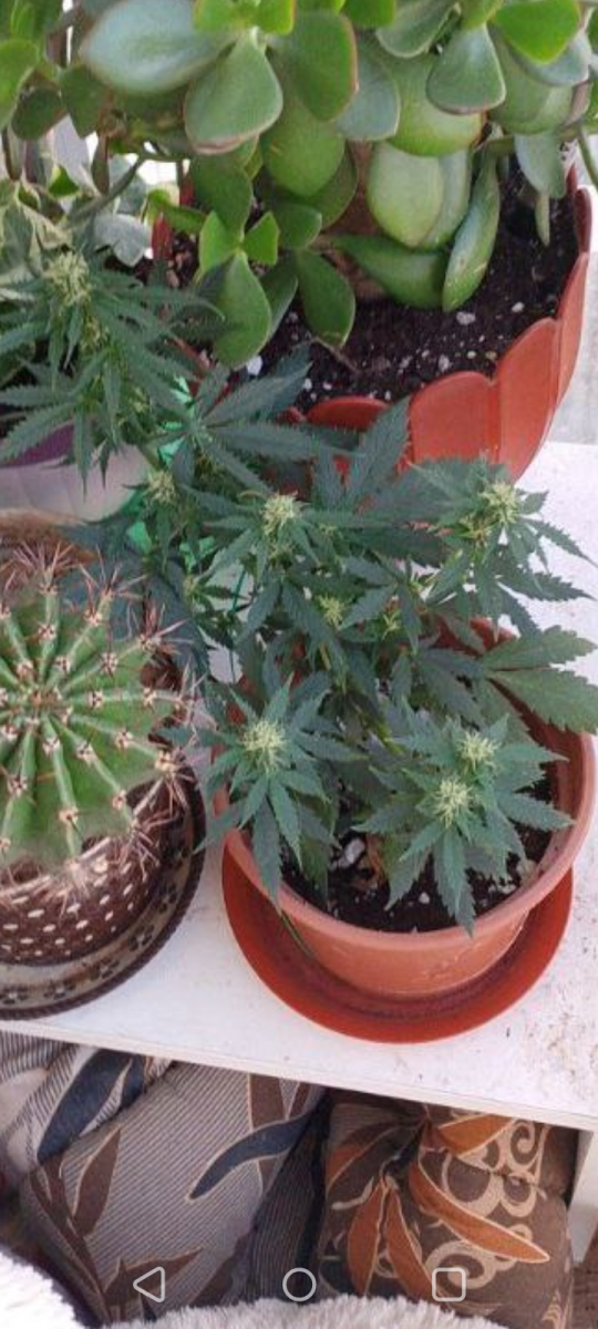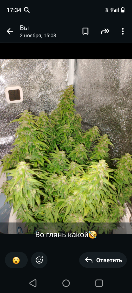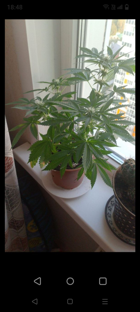 - Общие впечатлениямой первый гров, покупал семку по категории слабо пахнущей, чего сорт оправдал. Начну сначало, когда покупал, решил что конопля по сути то сорник и так вырастит, на начальном этапе была лед лампа 50 вт и горшок, с землёй из Ашана замешанный с перлитом, внизу пенопласт. Пророс в воде и был посажен, благодаря помощи чата Семяныча, понял что мало света докупил ещё быт леда 2 по 50вт и 3 по 20вт, сбил ящик из ДВП, это были начальные условия и покрасил ящик внутри белой матовой краской. С чем столкнулся, из-за безолаберного выбора земли сначало поймал минера. Благодаря чату, сразу было определено кто это, было куплено средство, кустик опрыскан и удалены 4 листика, на 10 дне, кустик чуть впал в стрес и не рос дней 5, потом отошёл, ближе к 20 дню пришли удобрения гхе, кстати приборы пш и ппм пришли раньше, пролил куст до дренажа, чем и обнаружил, выход ппм дренажа, всего 180, что очень мало, по совету из чата стал поливать по мере высыхания земли, водой из пятерки, догонял ее калмагом до 250 и добавлял гхе по каплям по таблице для цветения каждый полив, росток оживился вообще, на 30 день зацвёл, рост был 15 см, ну думал карлик и тут он как бахнул в рост, сейчас 44 день, рост кустика 37 см, растет и радует, начали образовываться шишки, он весь почти в них. В общем мне очень нравится. Кстати на счёт запаха, практически нет, рядом с ним одновременно сажал бонусную семку вдовы, она зацвела позже. Спасибо семяныч. Всем советую